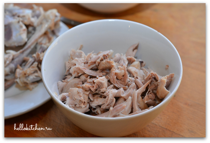 11. А пока, отделяем мясо от костей и нарезаем его на небольшие кусочки.