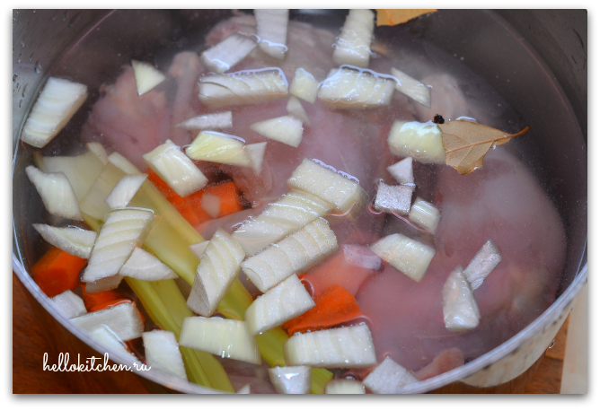 5. Проверяем наш бульон время от времени. Снимаем накипь.
