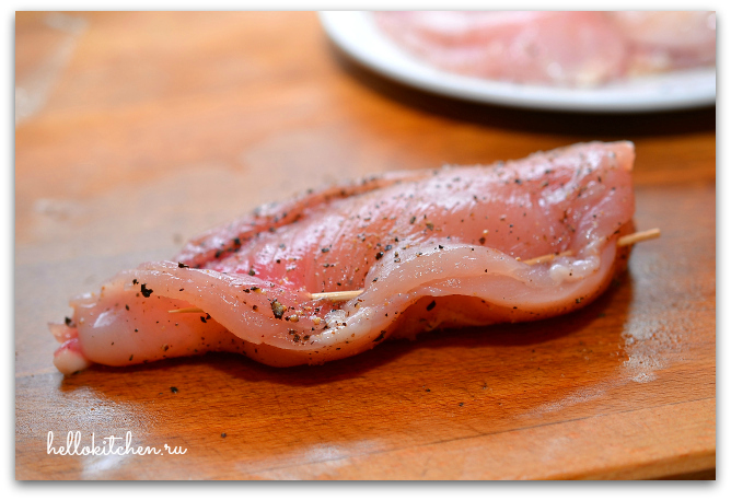 7. Закрепляем края зубочистками. Мне хватило по 2 штучки на каждый кусок.