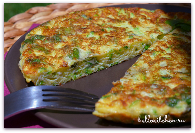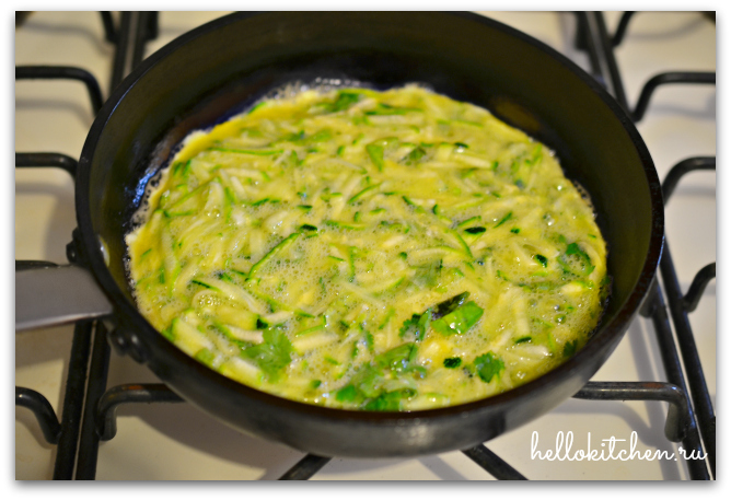 Я очень люблю цуккини или, как его ещё называют, «итальянский кабачок». И не только за его полезные качества, коих очень много: цуккини является богатым источником калия, клетчатки, фосфора и кальция; благодаря легкой усвояемости и низкой калорийности цуккини является одним из самых популярных овощей в диетах. Но и за его нежный и сочный вкус. Существует тысячи рецептов из цуккини, этот один из самых простых и быстрых. Такой омлет можно готовить хоть каждое утро. Получается очень нежно, вкусно и полезно. Кинзу в данном рецепте можно заменить на петрушку, укроп или лук-порей, или зелёный лук. Также, можно добавить немного натёртой моркови или картофеля, тёртого сыра и свежемолотого перца. В общем, экспериментируйте сколько душе угодно!