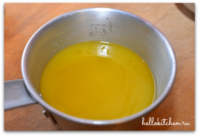 2. Растапливаем сливочное масло и сахар в небольшой кастрюльке. Убираем в сторону, остывать. Важный момент: сахара нужно класть именно столько, сколько указано в рецепте — 120 гр, если положить больше, кулич не поднимется.