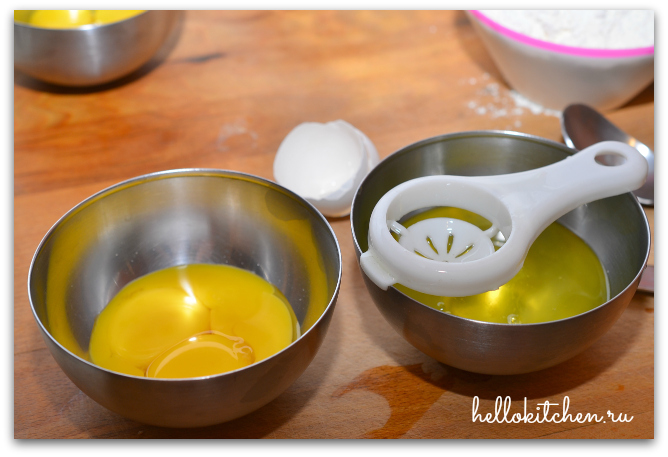 3. Отделяем желтки от белков. Для теста нам надо 2 яйца + 3 желтка.