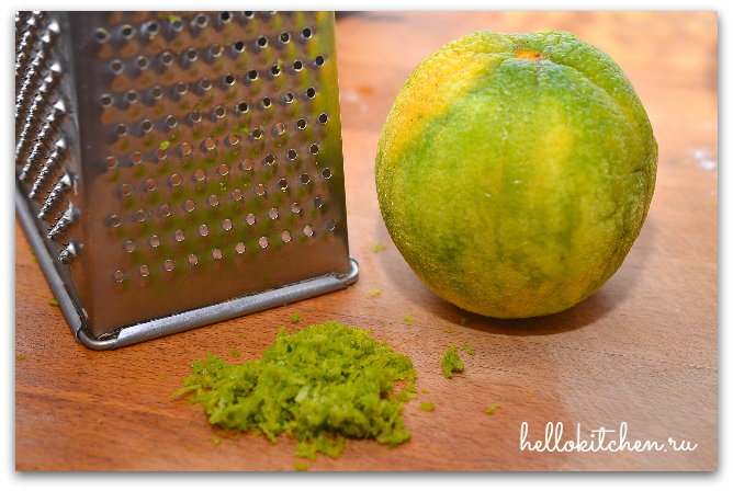 4. Натираем цедру. Нам надо, чтобы получилось 2 ч.л. цедры. В оригинале рецепта идёт лимонная цедра, ну а там как вам больше нравится. Мне нравится апельсиновый аромат, он более сладкий. А вот такие апельсины зелёного цвета продаются в Доминикане. По качеству ничем не отличаются от обычных апельсин, только цвет кожуры зелёный.