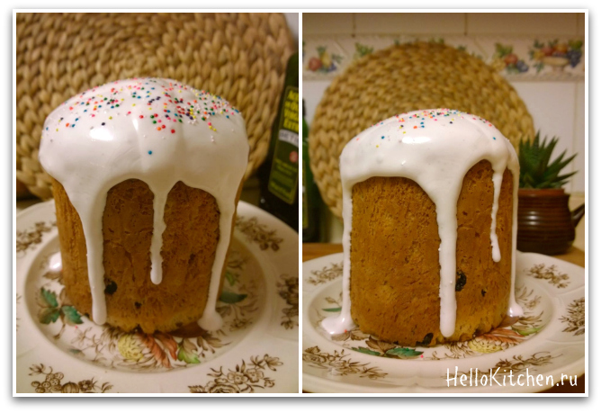 19. Всё! На следующее утро посыпаем кулич сахарной пудрой или поливаем сахарной глазурью, которую можно сделать из 100 гр сахарной пудры и 2-3 ст.л. лимонного сока. В общем, украшаем кулич на своё усмотрение.