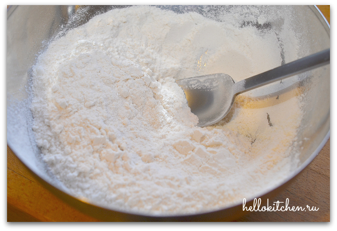1. Смешиваем муку, сахар и соль.