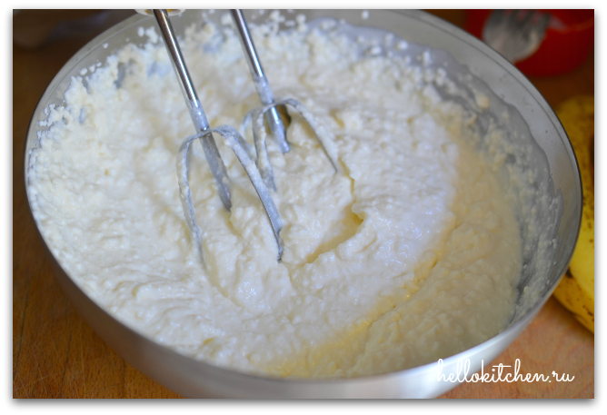 1. Взбиваем рикотту, йогурт и мёд миксером, пока масса не станет однородная и немного воздушная.