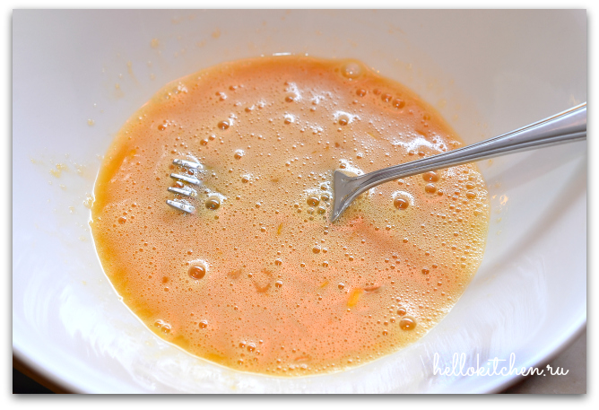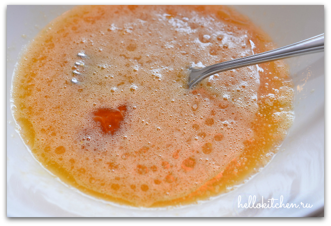 1. Разогреваем духовку до 180 градусов. Вилкой или венчиком взбиваем яйца с сахаром. Я взяла коричневый сахар, но можно и белый, или мёд.