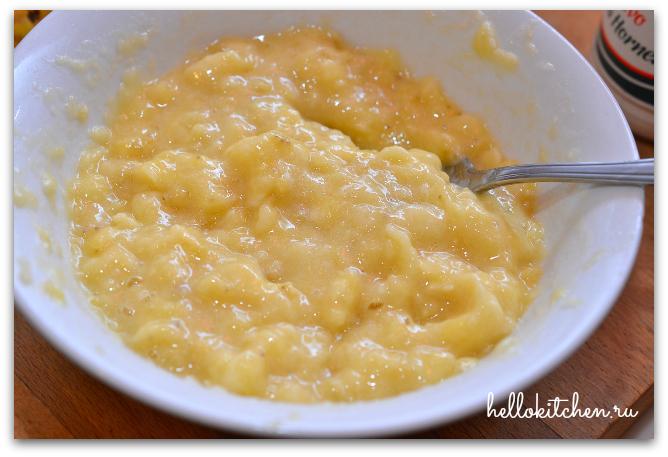 3. Именно вилкой разминаем бананы, можно не до полного пюре, когда с кусочками даже вкуснее.