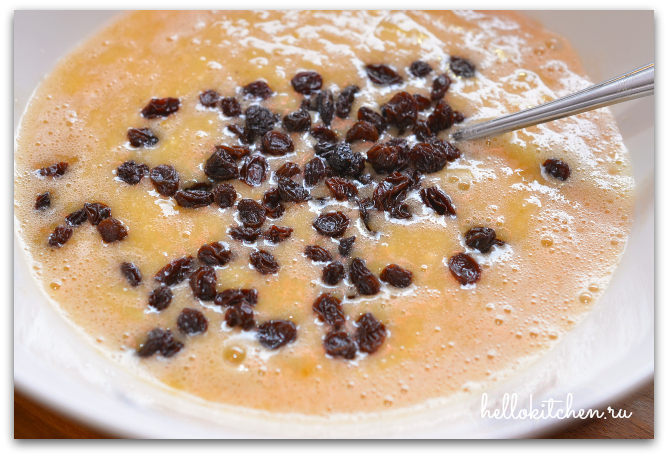 6. Смешиваем. Можно вместо изюма добавить курагу или другие любимые сухофрукты.