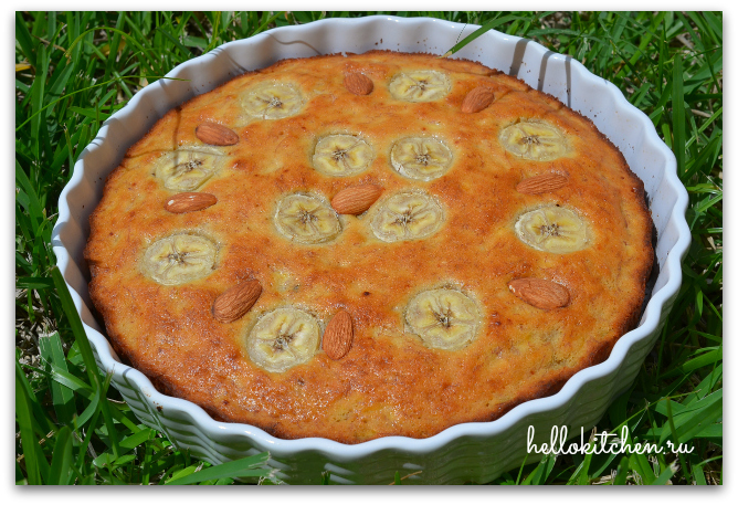 8. Всё! Румяный, ароматный, нежный и очень банановый пирог готов! Можно подавать его со свежими бананами или взбитыми сливками. Мне очень нравится такой пирог со свежим банановым пюре или шариком ванильного мороженого, пока пирог ещё тёплый.