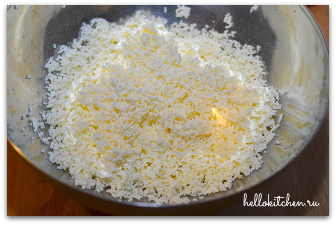 1. Протираем творог через сито, нам надо, чтобы не было крупинок. Творог подойдёт любой, даже рикотта.