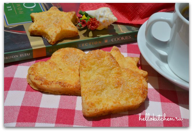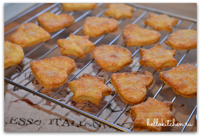 Проснувшись сегодня утром, после целой недели дождей, вдруг вышло солнце, на голубом небе ни облачка, и почему-то стало так хорошо и спокойно на душе, что захотелось испечь чего-нибудь совсем из детства — простого, уютного и домашнего. Это печенье одно из самых любимых, не только из-за вкуса, но и из-за простоты рецепта. Из такого теста можно приготовить всем знакомые «гусиные лапки», но мне больше нравится вырезать формочками. Для «гусиных лапок» тесто надо раскатывать тоньше, если вырезать формочкой, тогда раскатываем около 3-5 мм.