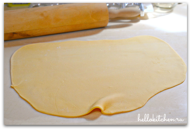 14. Раскатываем каждую часть теста на присыпанной мукой рабочей поверхности.