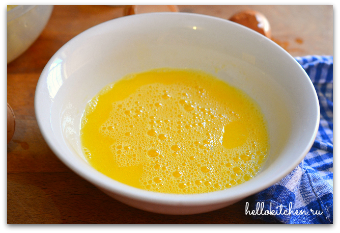 2. Затем слегка взбиваем яйца, растительное масло и молоко.