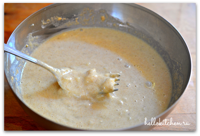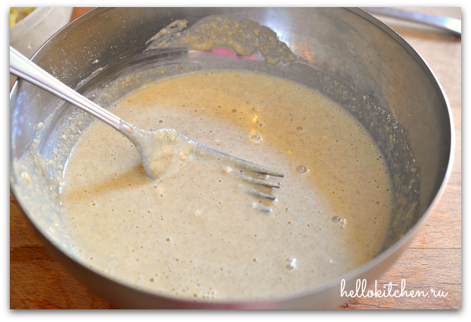 4. Соединяем сухие ингредиенты с жидкими. Хорошо вымешиваем, чтобы не осталось комочков.