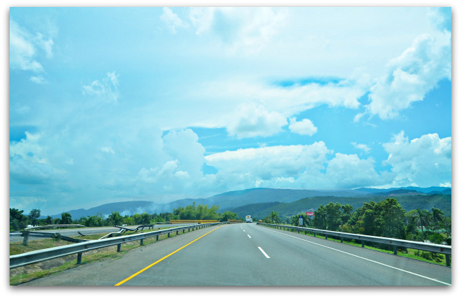 16. В путь по абсолютно ровной дороге! Совершенно ровный хайвей, без сучка и задоринки, без ям, без ментов, прячущихся в кустах чтобы оштрафовать за скорость. Только за такие прекрасные дороги уже можно уважать доминиканцев. Жаль, что у нас поломан круиз-контроль, так бы поставили 120 км.ч. и ехали бы спокойно, сняв ногу с педали газа.