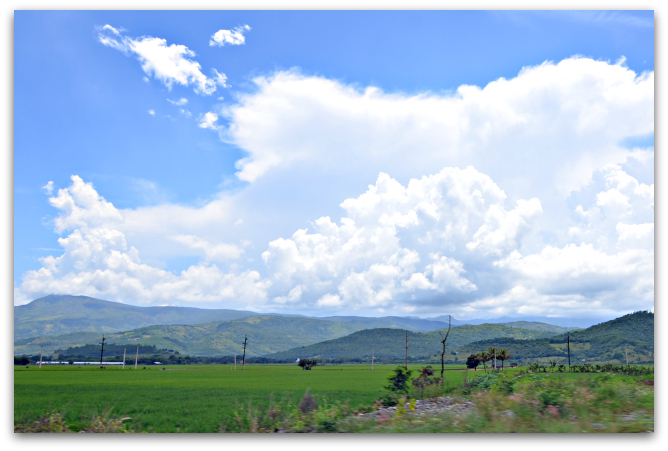 4. Дорога знакомая, хорошая, ровная, платная. По пути открываются шикарные виды на горы и рисовые поля. Сейчас лето, всё цветёт, зеленеет и благоухает.