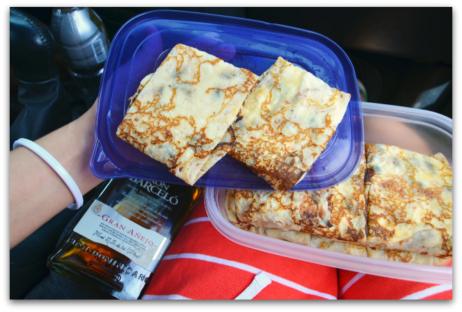 Итак, проснулись мы как обычно, в 9 утра. Позавтракали. Неспеша собрали сумку, взяв самое необходимое, купальники. полотенца, подушки (не могу спать на чужих подушках, поэтому всегда возим свои). Собрали с собой еду: буженину (свинина с вертела, такое же мясо, как я вам показывала на рождество, его тут жарят так каждую субботу, очень вкусное и свежее, а как пахнет ммм), также, решила сделать с собой французские блинчики с творогом, ну и по мелочам, фрукты, воду, хлеб, вафли, соль, штопор для вина (а вдруг пригодится). В 11:30 вышли из дома. Впереди 5 часов пути.