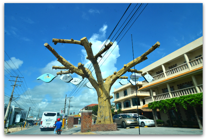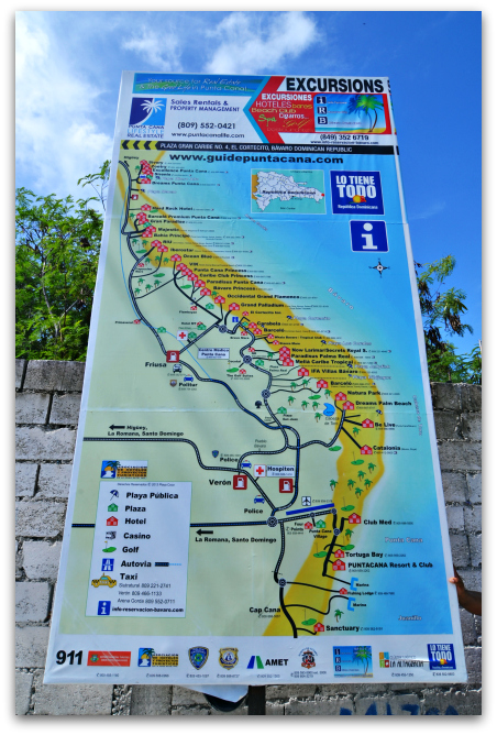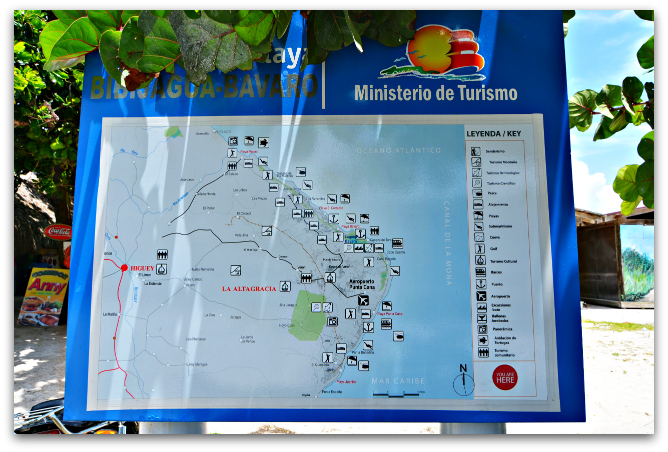 3. Дальше увидели карту. Около карты стояло несколько человек, готовых помочь всего за 200 песо. Глянув на карту, стало понятно, что ехать надо всё время прямо, так что помощь нам не понадобилась. Хотя один особо настойчивый персонаж назойливо предлагал свою помощь; я сказала, что нет денег, только карточки, на что предприимчивый юноша ответил «итс окей, заедем в банк». Но я сказала волшебное слово «no nesesito» (не нужно) и мы поехали искать пляж.