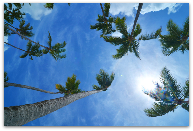 30. Пальмы, словно кисти, оставляют белые разводы облаков.