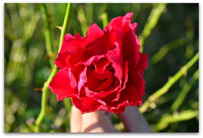 8. Я вдруг вспомнила, что тут совсем рядом есть большой сад с розами, в который я планировала заехать еще зимой. Приехали, а хозяев розовой плантации нет дома. Решили просто пофотографировать немного, так как на закате свет получается потрясающе красивый. Но к саду просто так не подойти, не стану же я заходить в чужой двор без спроса, хотя ворота были открыты; нашла небольшую лазейку немного сбоку.