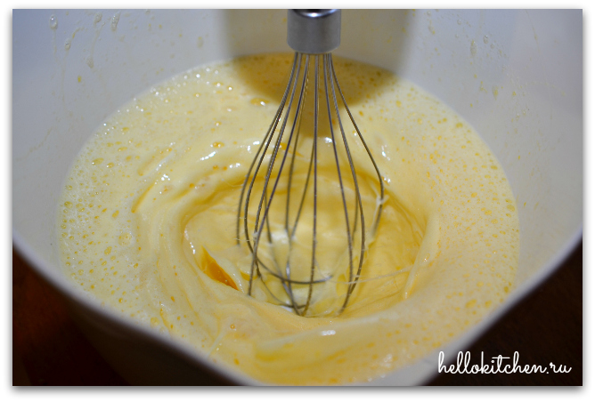 Взбиваем яйца и сахар. Масса должна посветлеть и немного увеличиться в объеме. Лучше и быстрее всего делать это электровенчиком или миксером.