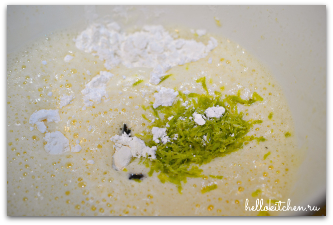 2. Добавляем цедру, крахмал, соль и ваниль. Ваниль на ваше усмотрение, это может быть и ванильный сахар, или просто ваниль на кончике ножа, или ванильные зерна (как у меня). Хорошо перемешиваем.