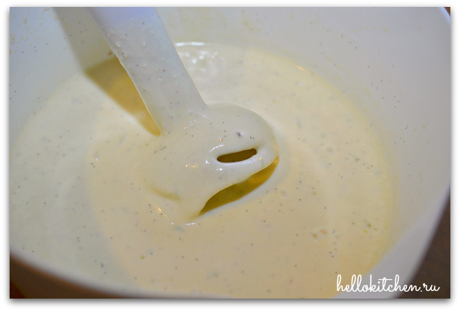 3. Добавляем рикотту и крем-чиз, взбиваем блендером (ручным удобнее всего). Масса должна стать гладкая, без комочков.