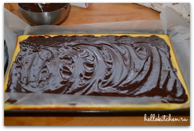 7. Ровно распределяем ганаш на поверхности ещё горячего чизкейка и убираем в холодильник на ночь или минимум на 2 часа.