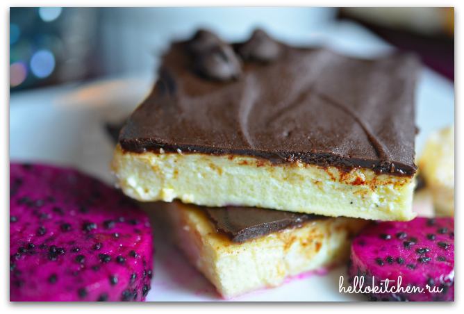 8. Всё! Пирожное получилось нежно-творожное, с нотками ванили и лимонной цедры. Нарезаем чизкейк на порционные квадратики и зовём гостей на чай! А как приятен утренний кофе с кусочком такого пирожного и свежими фруктами мммм!