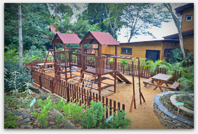 15. Пустующая детская площадка, выстланная опилками. Очень удобно брать детёныша с собой в такие места. Пока вы трапезничаете, ребёнок бесится, всем хорошо.