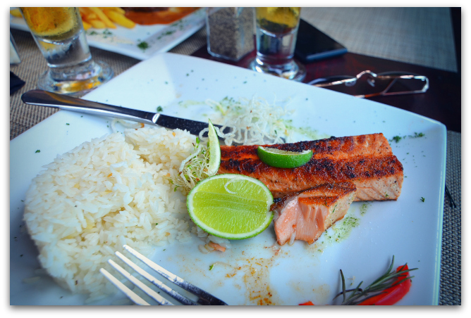 19. Мой мужчина заказал мясо и жареную картошку, а мне захотелось рыбки на гриле. Если честно, еда совсем не впечатлила, ничего особенного, мясо пережарено, рыба суховата, соуса вообще не было, но это всё детали, мы сюда приехали не столько вкусно поесть, сколько полюбоваться видами, но повара могли бы приготовить и получше, на мой взгляд. Счет получился совсем демократичный, примерно 75$ на двоих. Чуть не забыла, музыка была на удивление великолепная, играл очень хорший и интересный джаз, вот бы так везде в общепитах!
