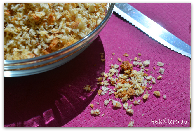[…] 5. Обваоиваем шарики в крошках. Я использую крошки со специями, так ещё вкуснее и ароматнее, но можно использовать любые крошки, которые есть под рукой. А можно сделать крошки самому, как в этом рецепте. […]