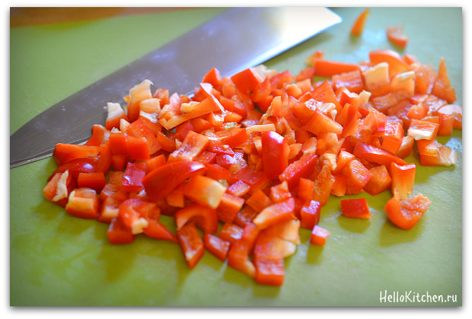 2. Нарезаем сладкий перец на небольшие кубики.