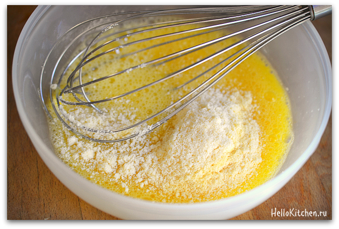 6. В отдельной миске взбиваем яйца, соль и сыр пармезан.