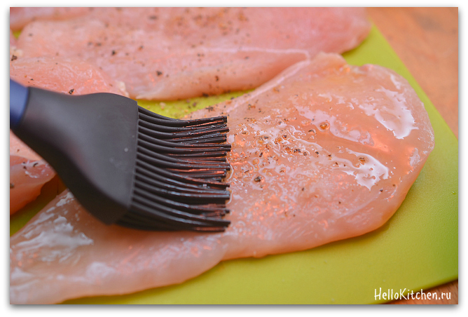 5. Кладём филе на сухари маслянной стороной вниз и только после этого смазываем вторую сторону филе сливочным маслом. В сухари можно добавить немного тёртого сыра пармезана.