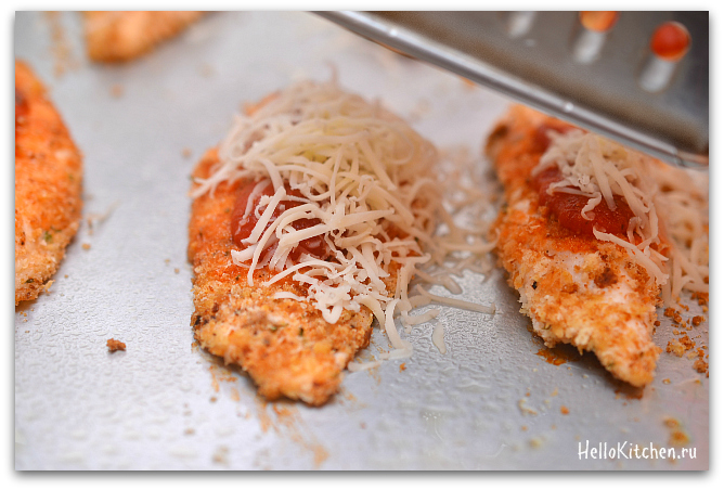 Панировочные сухари можно купить покупные или сделать самому, вот по этому рецепту: Домашные панировочные сухари. Томатный соус можно использовать любой ваш любимый, я обычно покупаю традиционный итальянский соус. Моцареллу тоже можно заменить на любой мягкий сыр, но с моцареллой будет намного нежнее, попробуйте!