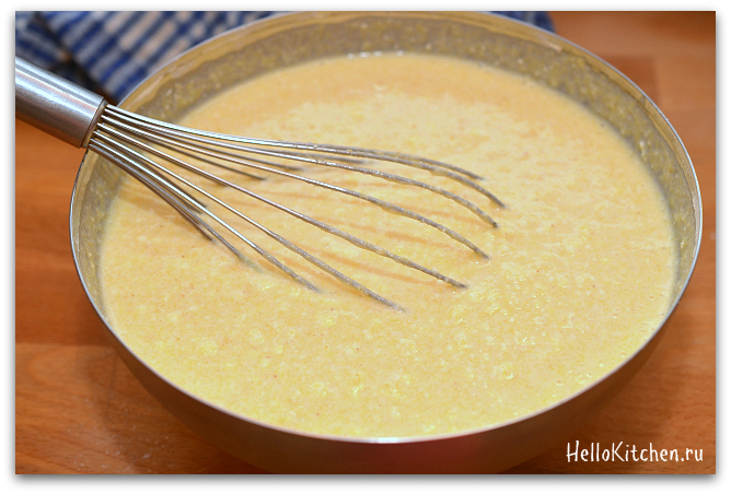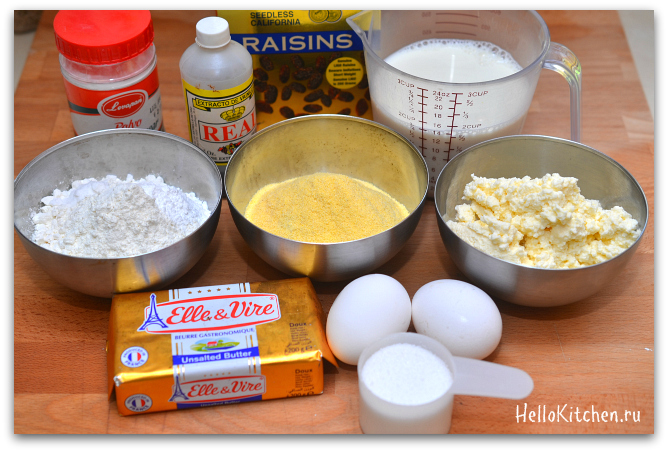 Основу рецепта я взяла с уже имеющегося у меня на сайте рецепта «Творожные блинчики«, заменив половину пшеничной муки кукурузной, и творога положила в два раза больше, чтобы был более творожный вкус. Тут надо заметить, что чем меньше творога, тем пышнее оладушки, но мне нравится, когда творога много. Тесто получилось более густое, а блинчики стали воздушными оладушками!