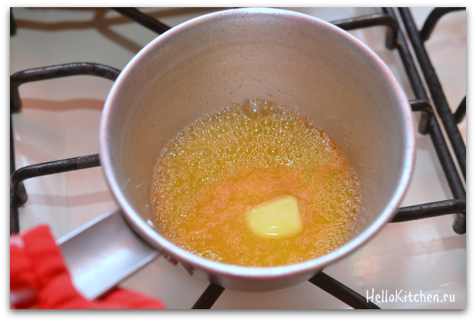 1. Растапливаем сливочное масло и отставляем в сторону, остывать.