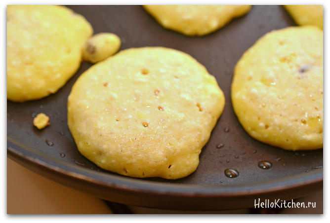 7. Как только на поверхности оладушка появятся пузырьки — пора переворачивать!