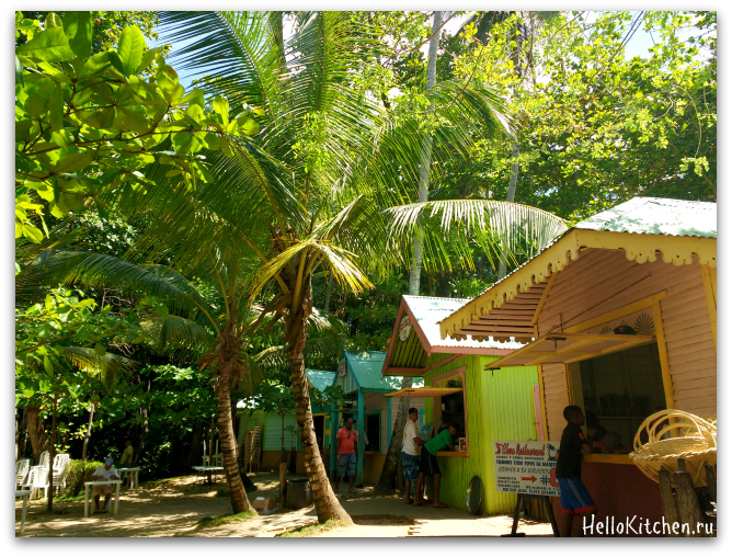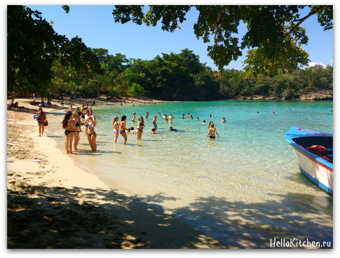 Людей очень много, место это туристическое, на что указывает огромное количество продавцов местных сувениров: Мамахуана, ювелирные изделия из ларимара, деревянные слоны и черепашки, картины и т.д.