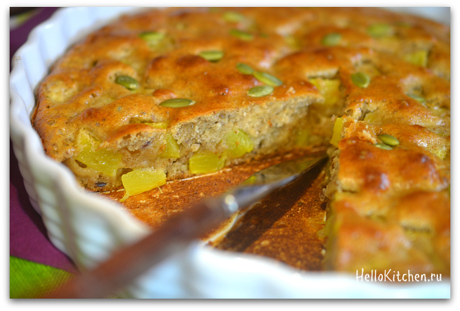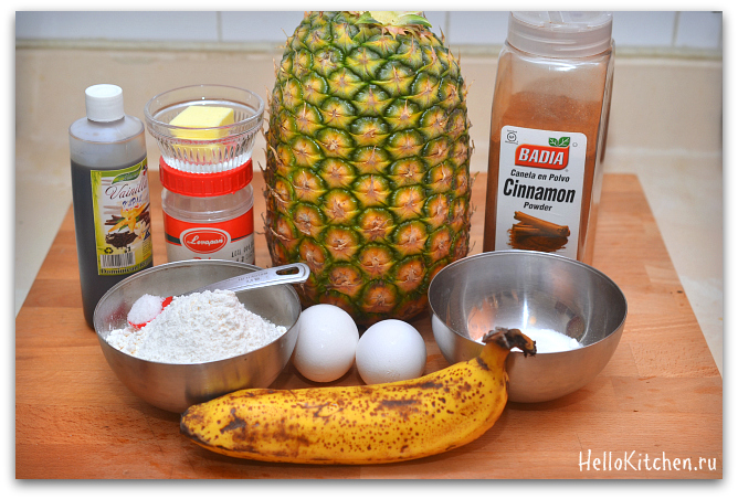 Этот пирог стал частым гостем на моём столе, так как его легко и быстро готовить, плюс, можно бесконечно эксперементировать с начинкой. Изначально, я пекла этот пирог с яблоками, но однажды заменила их ананасом, и теперь это мой любимый вариант. Ананасы в Доминикане дешёвые, очень сладкие и сочные (такие же сладкие, как консервированные, которые можно использовать, если нет свежих). А если к ананасу добавить горсть изюма или мелко нарезанного чернослива, то сахар в рецепте можно смело убавлять, либо и вовсе убрать. Если банан будет большой, то пирог получится немного влажный. По желанию, в тесто можно добавить пару чайных ложек молотого льняного семя, на вкус это никак не влияет, а полезная клетчатка никогда не будет лишней. Украшаем пирог тоже по своему вкусу, можно украсить тыквенными или кунжутными зёрнышками, а можно просто посыпать сахарной пудрой.