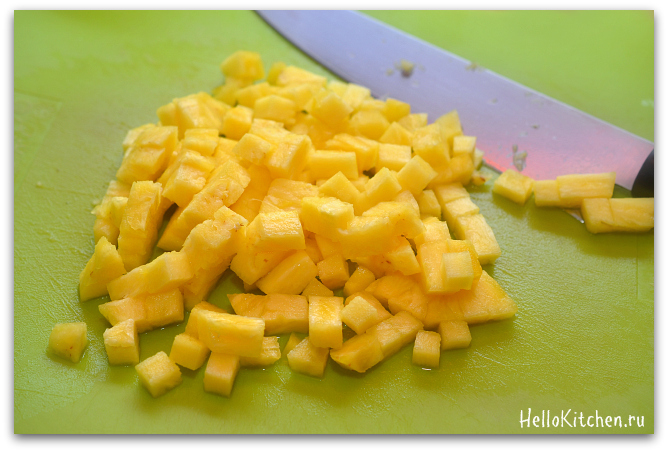 Нарезаем ананас кубиками.