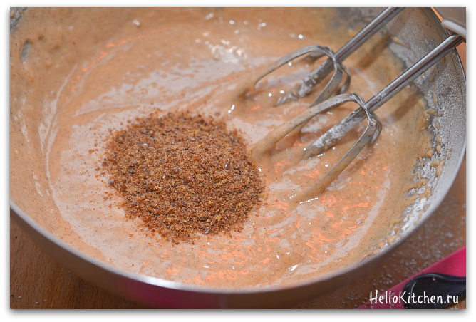 6. Добавляем лён, снова взбиваем.