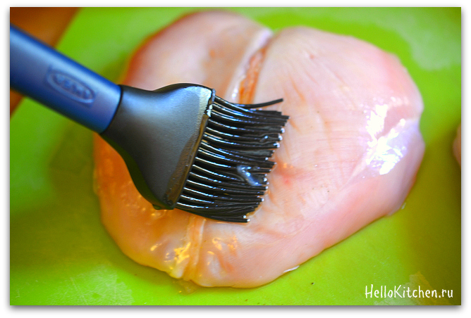 2. Со всех сторон смазываем куриное филе оливковым маслом.