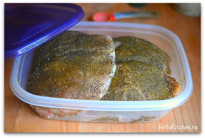 4. Кладём его в контейнер, закрываем крышкой и убираем в холодильник минимум на 3 часа, можно и на всю ночь.