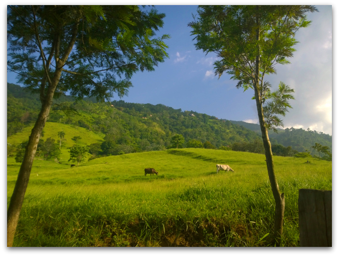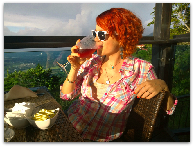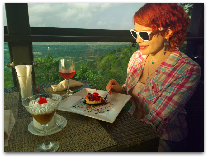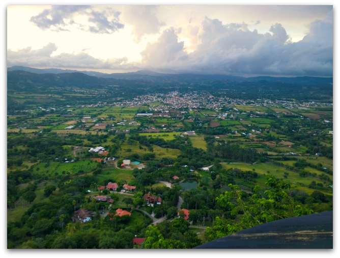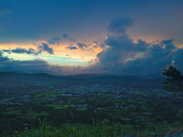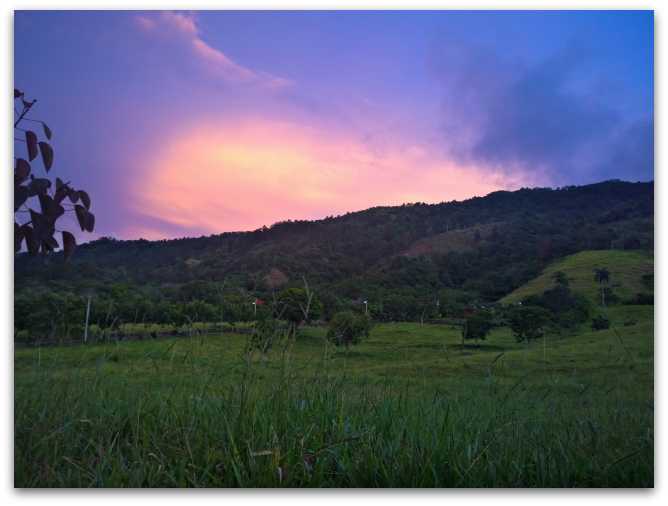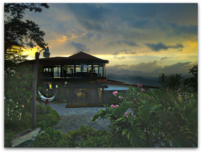 Вздумалось мне посмотреть красочный тропический закат с высоты птичьего полёта, а именно с горы, на которую любуюсь каждый день. Посмотреть его (закат) оттуда можно, только лишь заехав в ресторан Aroma de la Montaña, который там находится. Вооон он там посредине горы!