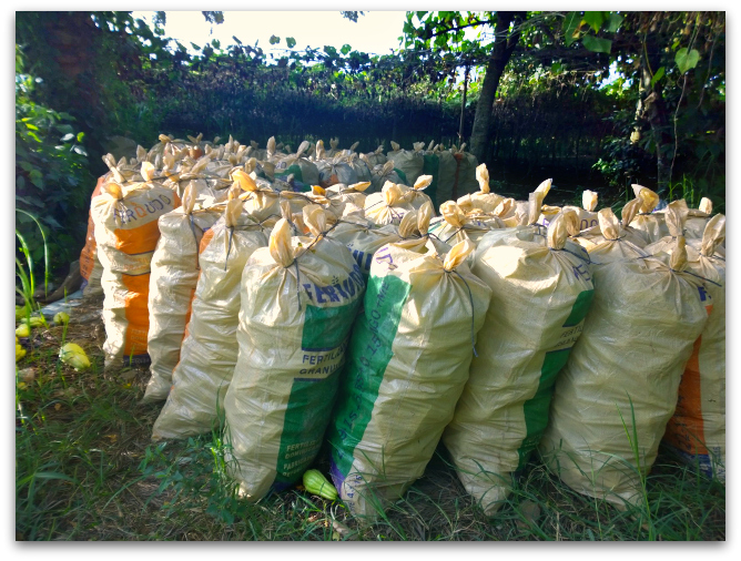 5. Заросли Чайота. Собрали, упаковали, урожай готов к загрузке. Ежедневно из Харабакоа вывозят несколько груженых чайотом грузовичков Toyota. Развозят по всей стране, а может и на экспорт тоже.