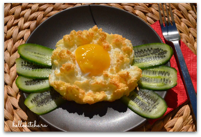 2-4 яйца, 5-10 помидорок черри, 30-50 гр сыр Моцарелла, зелень, соль, перец, 1 ч.л. [...]