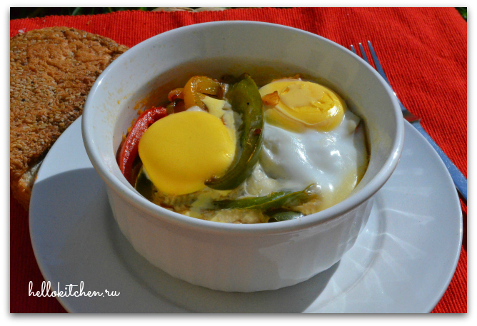 1 лук, 1 цуккини, 1 красный сладкий перец, 4 крупных яйца, 1/4 чашки тёртого сыра Пармез[...]